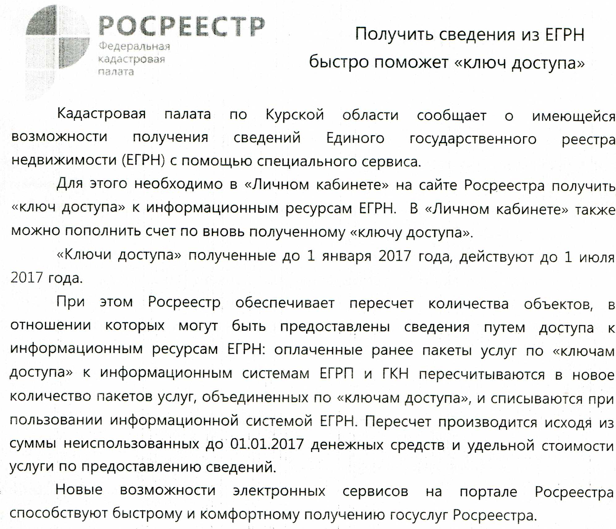 Получить сведения из ЕГРН быстро поможет "ключ доступа"